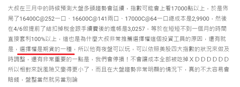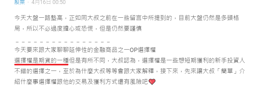 其實按照排程,我今天本來是要講「期貨」的,結果在隔壁股票板看到一位大哥的選擇權教學,有些感觸。
