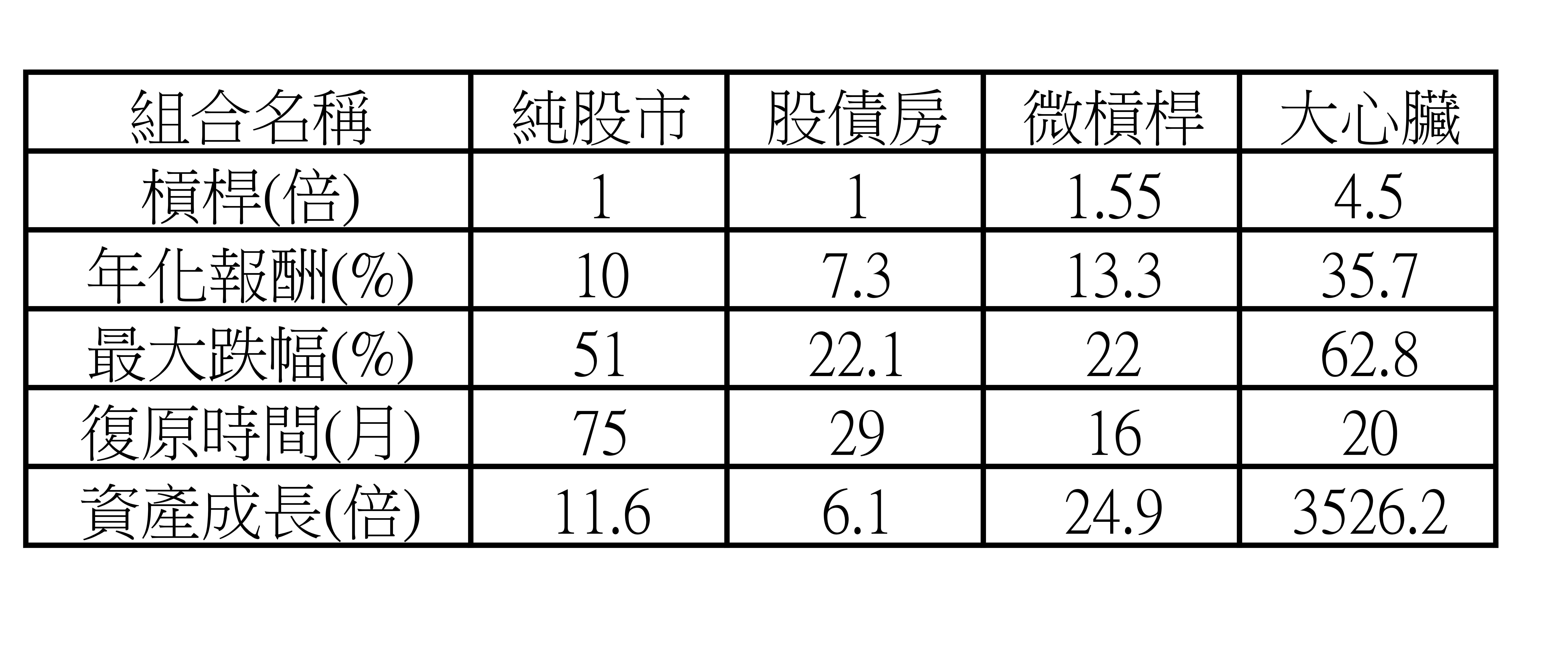 (注意,以上配置只經過簡單歷史回測,而且不考慮各種槓桿成本和通膨,所以各位不要直接抄作業。妳如果破產,我會笑妳。)
