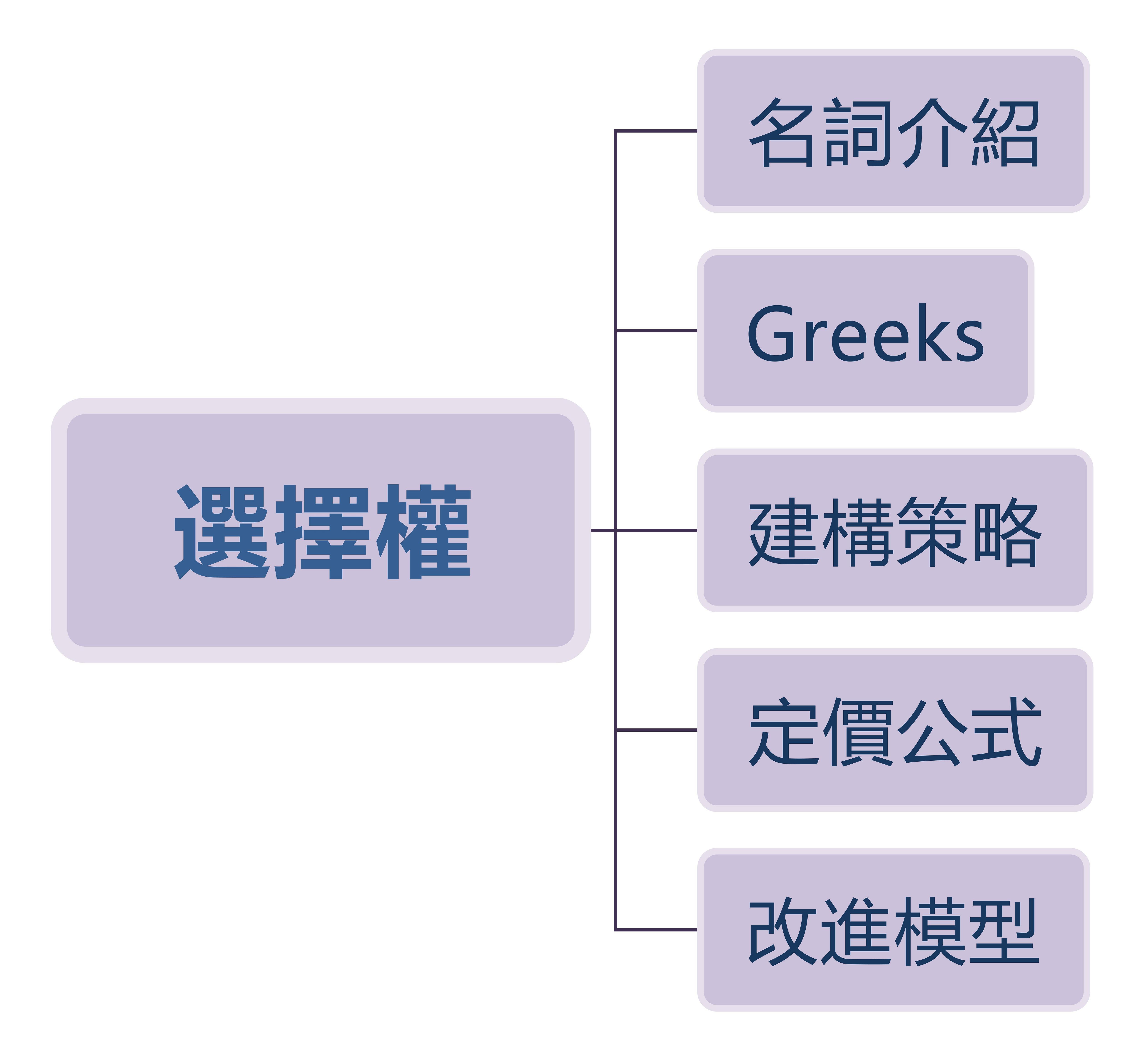 Delta, Gamma, Vega, Theta, Rho,至少要知道象徵含意。