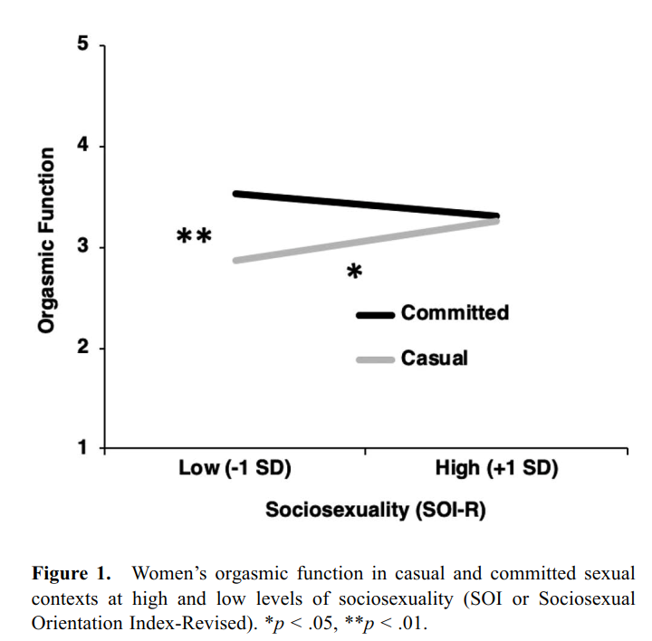 [10] "Women’s Orgasm and Sexual Satisfaction in Committed Sex and Casual Sex: Relationship Between Sociosexuality and Sexual Outcomes in Different Sexual Contexts" Val Wongsomboon,Mary H. Burleson &Gregory D. Webster, Pages 285-295 | Published online: 04 Oct 2019 https://doi.org/10.1080/00224499.2019.1672036