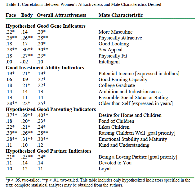 [13] "Attractive Women Want it All: Good Genes, Economic Investment, Parenting Proclivities, and Emotional Commitment", David M. Buss and Todd K. Shackelford https://doi.org/10.1177/14747049080060011