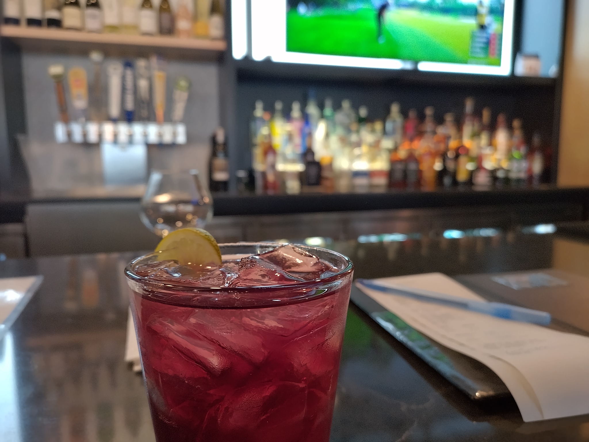 我自己默默喝cocktail,結果bartender說我太安靜,於是我們開始聊天,工作經歷、高爾夫、酒類...